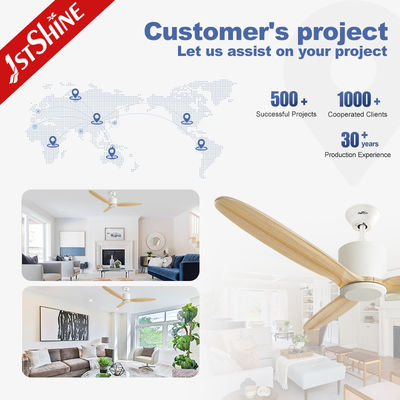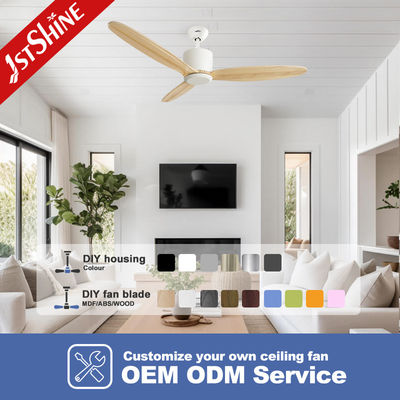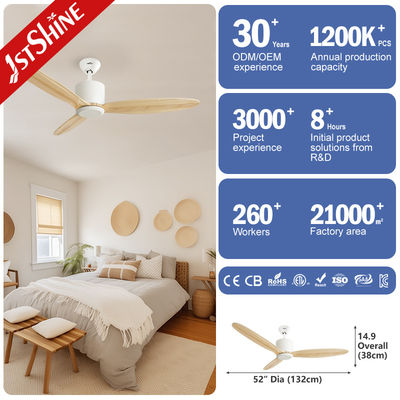 Ventilador de tecto de 52 polegadas com motor de corrente contínua decorativo 3 lâminas de madeira sem luz