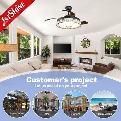 Esta é uma combinação perfeita com ventilador de tecto invisível de 42 polegadas e luz de lustre, design contemporâneo e bela aparência, motor de alta qualidade sem ruído,Com alto-falante Bluetooth, melhor desempenho para quarto, sala, sala de jantar, etc.