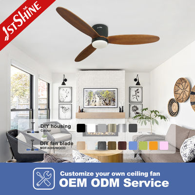 Ventilador de teto LED de 52 polegadas com luz, motor DC, 3 lâminas de madeira maciça decorativas