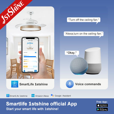 Ventilador de teto retrátil moderno de 42" com luz LED regulável e controle remoto para sala de estar e quarto