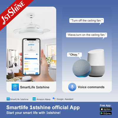 220V 50Hz Ventilador de teto retrátil de lâminas com luz LED de 3 cores