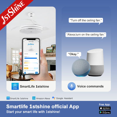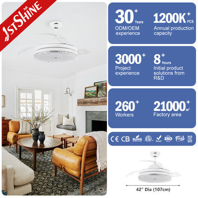 Luz de ventilador de teto retrátil de 42 polegadas com motor DC reversível
