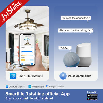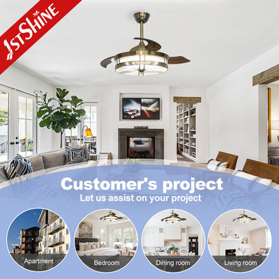 Ventilador de tecto LED dobrável decorativo motor DC lâmina retrátil acrílica