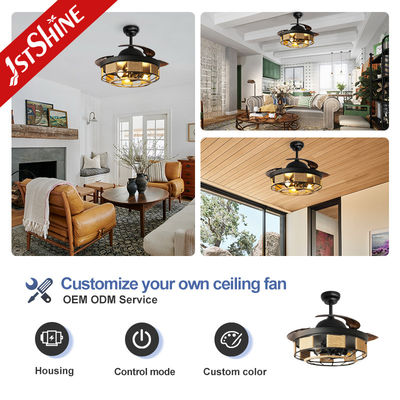 Uma mistura genial de forma e função, este ventilador de tecto industrial tem 3 lâminas retráteis e a sombra de gaiola de estilo industrial.Com o controle remoto incluído você pode operar o ventilador de 3 velocidades e luz separadamenteEsta luz certamente se tornará uma peça de declaração e pode mudar a aparência de qualquer sala com pouco esforço.