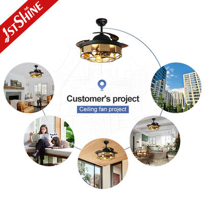 Ventilador de teto retrátil preto de 42 polegadas com luz e controle remoto