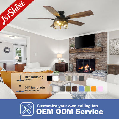 Ventilador de teto com motor DC e 5 pás em MDF para ambientes internos, comerciais e estilo rústico