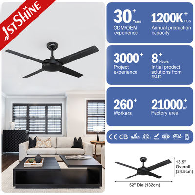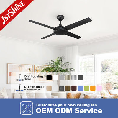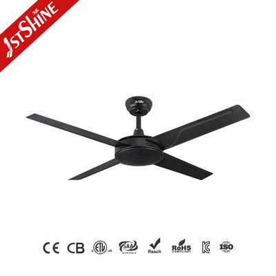 Ventilador de teto de metal preto com motor AC de 4 pás, 61W, 3 velocidades, controle remoto