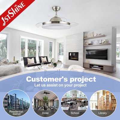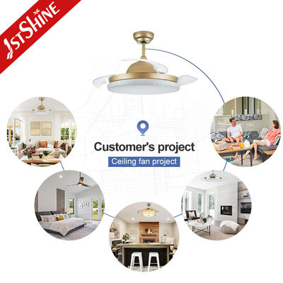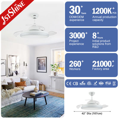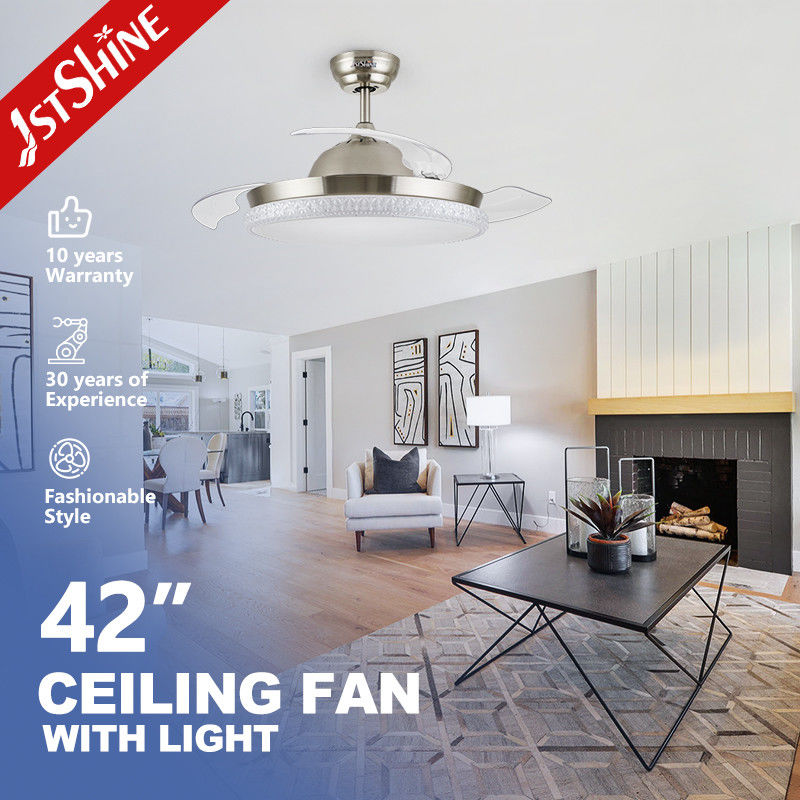 Ventilador de teto retrátil com luzes, ventilador de teto moderno de 42 polegadas para quarto em 3 cores mutáveis