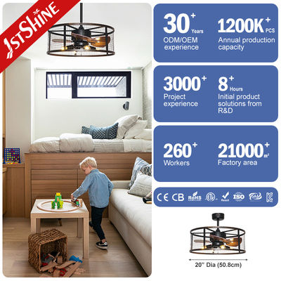 Ventilador de teto de jaula interior com kit de luz com controle remoto