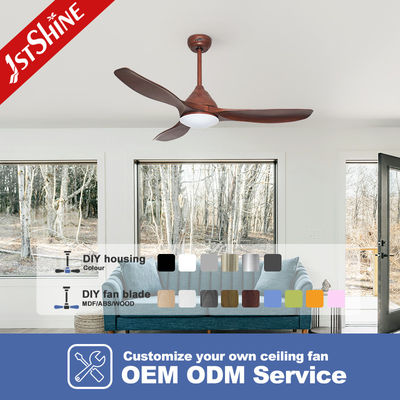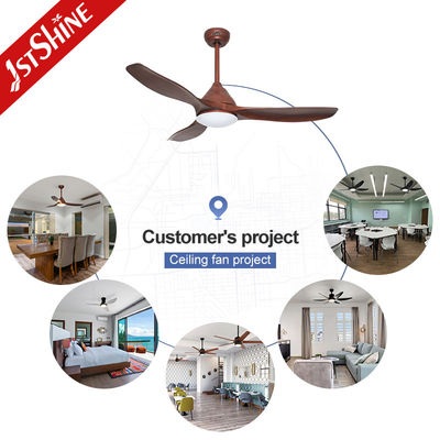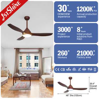 Ventilador de teto LED de plástico de 48 polegadas, lâmina com cor de grão de madeira, motor DC