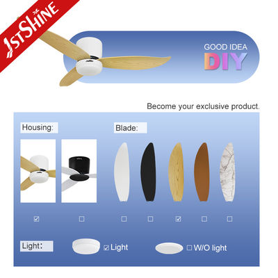 Ventilador de teto LED de montagem embutida com lâminas ABS de 52 polegadas com cor de grão de madeira
