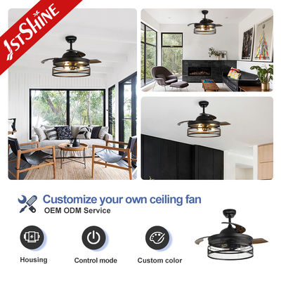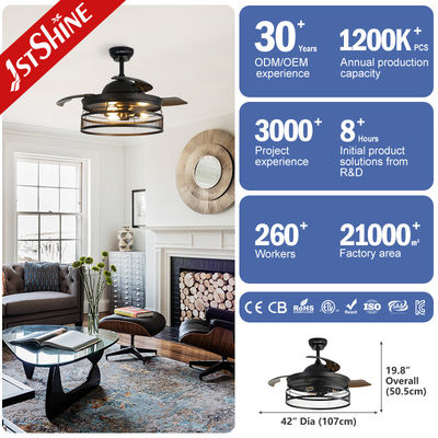 Ventilador de teto invisível de 42 polegadas estilo rústico com luzes para quarto