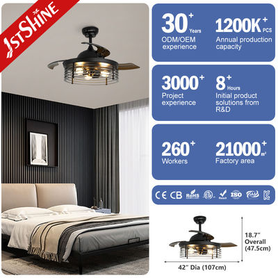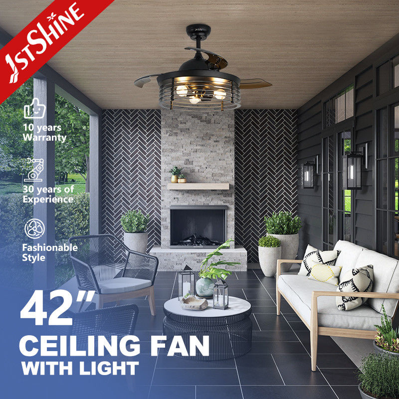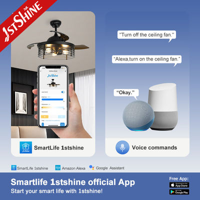 Descrição de Ventilador de tetoVentilador de teto com lâminas de 42'' que podem ser retráteis automaticamente ao ligar e desligar, lâminas de acrílico claras e leves trazem vento poderoso. A lâmina é feita de material de PC de alta qualidade, tornando-a mais durável. Motor de cobre: Inserido com motor silencioso, fonte de alimentação estável e forte, mantém o ambiente de vida silencioso, traz sua experiência de vida e sono confortável