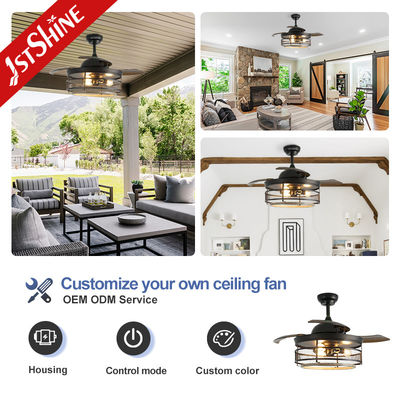Ventilador de Teto Com Luz Ventilador de Teto Industrial Lâminas Retrátil Gaiola Vintage Chandelier Fan