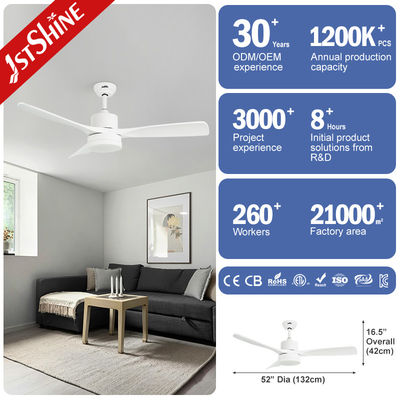 Ventilador de tecto de 52 polegadas com 3 lâminas de ventilador cinza sólido, motor preto mate e classificação à prova de umidade adequada para instalação ao ar livre.