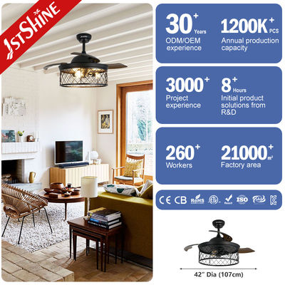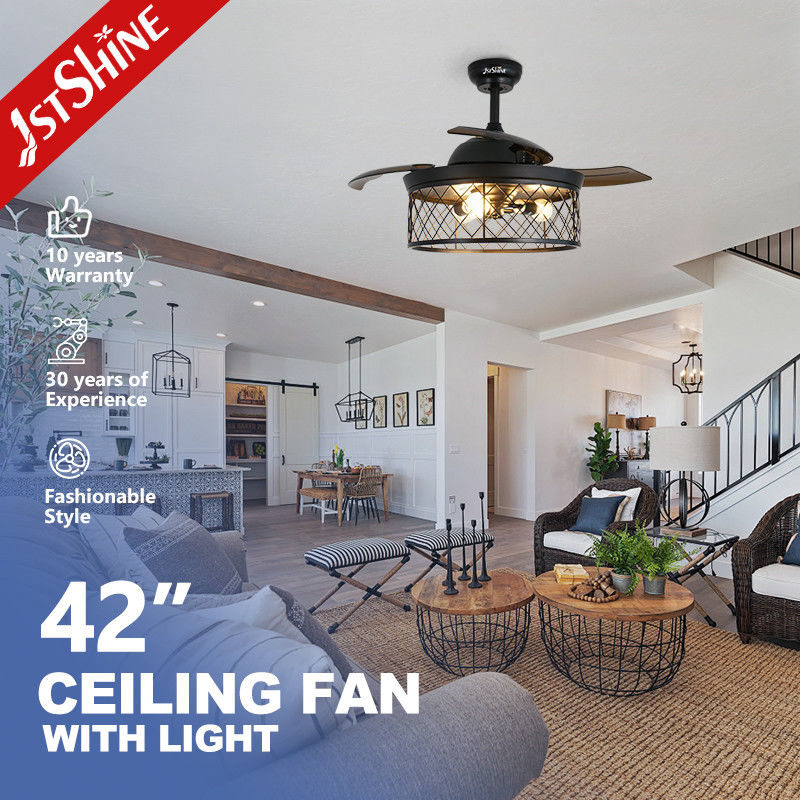 Ventilador de teto invisível de 42 polegadas para quarto de fazenda com luzes e controle remoto