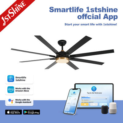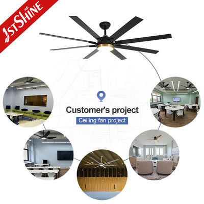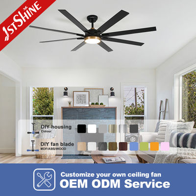 65 " Ventilador de teto grande preto mate 8 MDF lâminas DC motor Led Ventilador de teto com controle remoto
