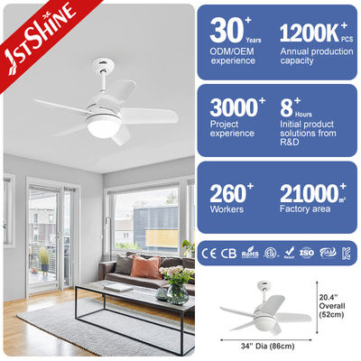 Melhora o teu espaço com o nosso elegante ventilador de teto branco.Tem cinco lâminas ABS para um fluxo de ar óptimo e um motor AC com controle remoto de três velocidades.Eis porque se destaca: