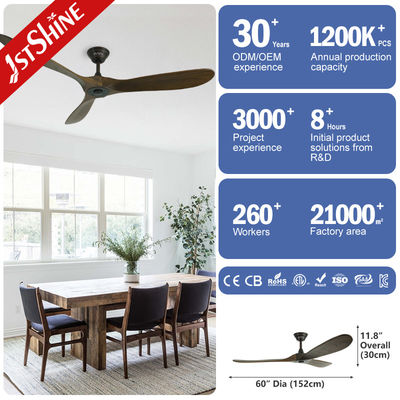 Cada lâmina deste ventilador de teto é meticulosamente feita à mão de madeira maciça de alta qualidade, garantindo durabilidade e uma estética atemporal.Os ricos padrões de grãos e os tons quentes da madeira dão um toque de sofisticação a qualquer espaço, criando uma atmosfera acolhedora e convidativa.