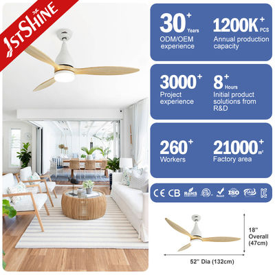 Temos o prazer de apresentar o nosso ventilador de tecto de estilo contemporâneo de 52 polegadas, este produto é feito com uma combinação de metal, lâminas de madeira maciça e uma lâmpada acrílica,assegurando uma aparência elegante e uma construção robustaO ventilador possui três lâminas de madeira resistentes que fornecem um fluxo de ar poderoso.Este ventilador de teto está equipado com uma fonte de luz LED de 3 cores, permitindo-lhe selecionar o ambiente de iluminação desejado para o seu espaço.