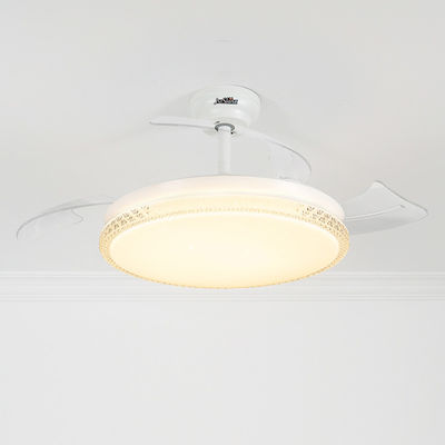 Os ventiladores de teto com lâminas retráteis são controlados separadamente pelo controle remoto.A lâmina transparente tem uma função telescópica, que fecha automaticamente a lâmina quando não está em funcionamento, economizando espaço e reduzindo o acúmulo de poeira. Feito de material ABS, fácil de limpar e resistente.Comparado aos ventiladores de teto tradicionais, o ventilador de teto retrátil com controle remoto é muito mais fácil de instalar e evita tremores. Adequado para sala de estar, quarto de crianças e casa de fazenda.