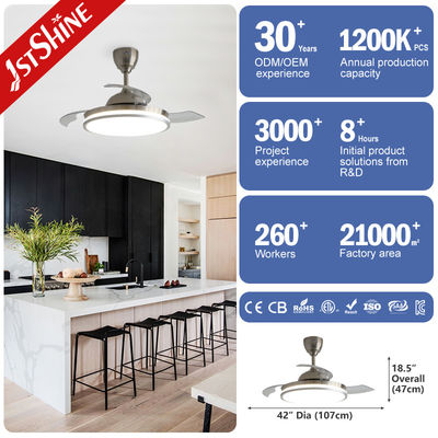 O nosso ventilador de teto de LED invisível de estilo moderno, concebido para melhorar os seus espaços de vida com funcionalidade e estilo.Este ventilador de 42 polegadas tem um design elegante e contemporâneo que se integra perfeitamente em qualquer sala, tornando-se uma escolha ideal para áreas com tetos baixos e espaço limitado, como quartos, salas de estar, cozinhas e muito mais.