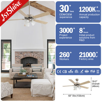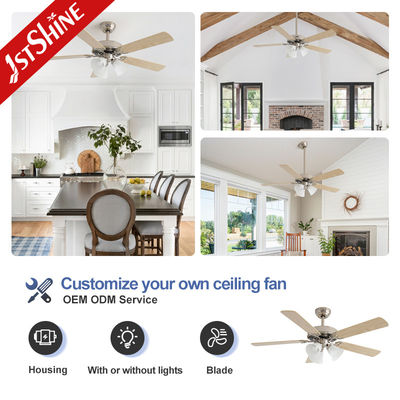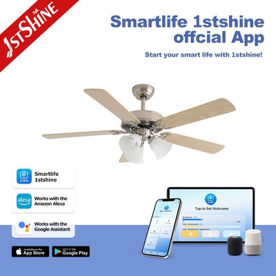 Dimmable 52 polegadas 3 cores LED luz ventilador de teto interior lâmina de compensado