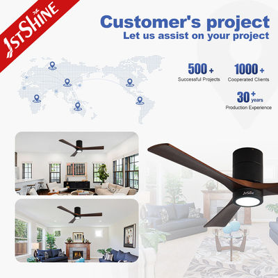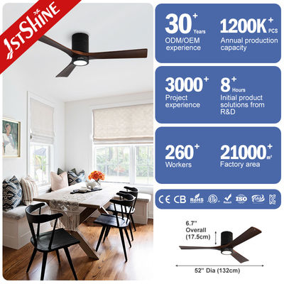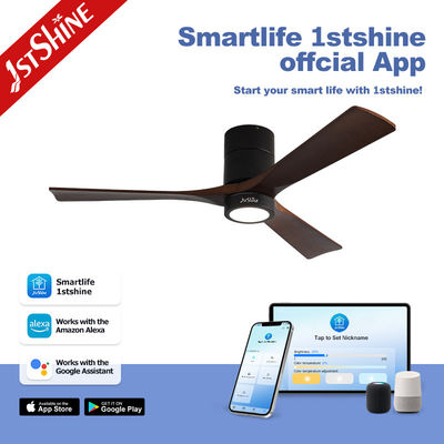Decorativo 3 lâminas de madeira natural Flush Mount Led Tuya Smart Ventilador de teto com luz