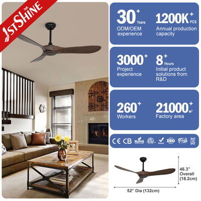 A curva suave da pá de madeira feita à mão maximiza o fluxo de ar e consome menos energia ao girar, economizando energia;